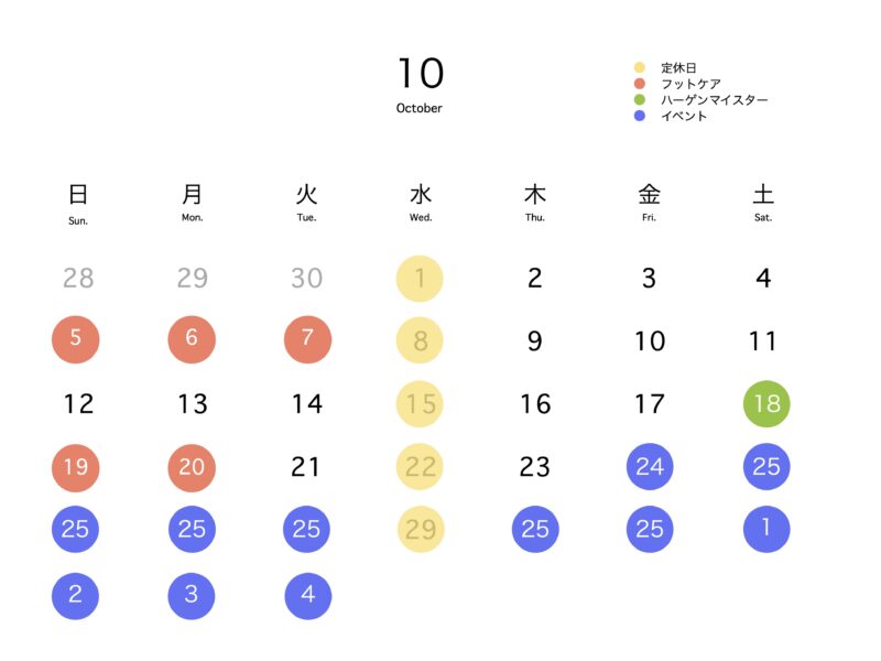 ◇10月のフットケア🦶✨ 【9月30日現在のご予約状況】