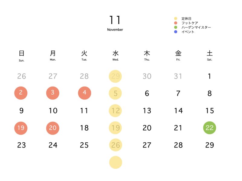 ◇11月のフットケア🦶✨ 【11月1日現在のご予約状況】