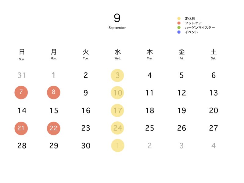 ◇9月のフットケア🦶✨ 【8月23日現在のご予約状況】